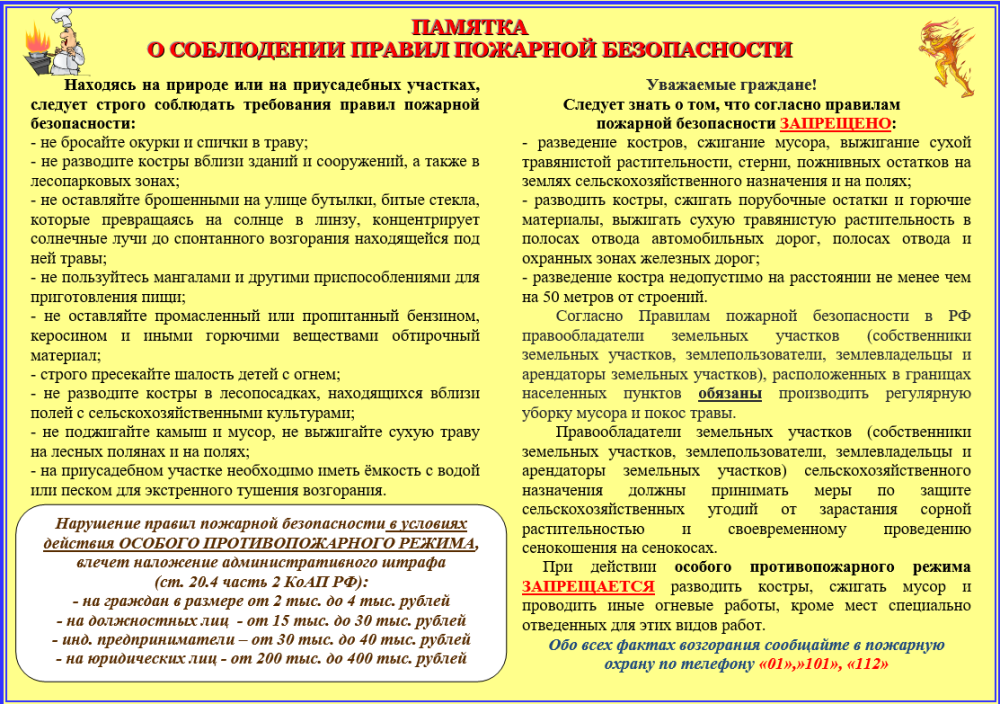 Памятки по пожарной безопасности