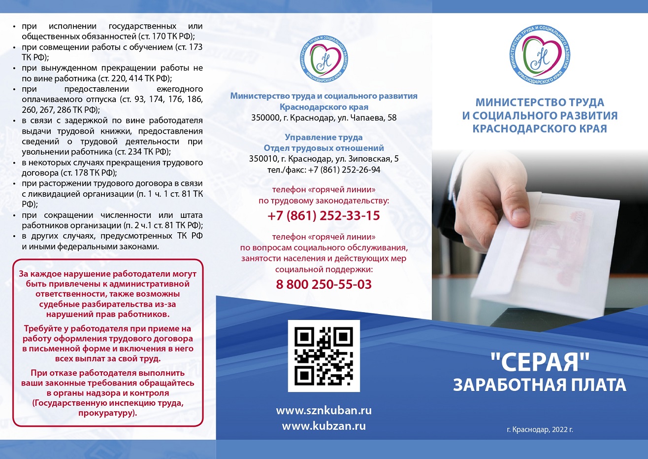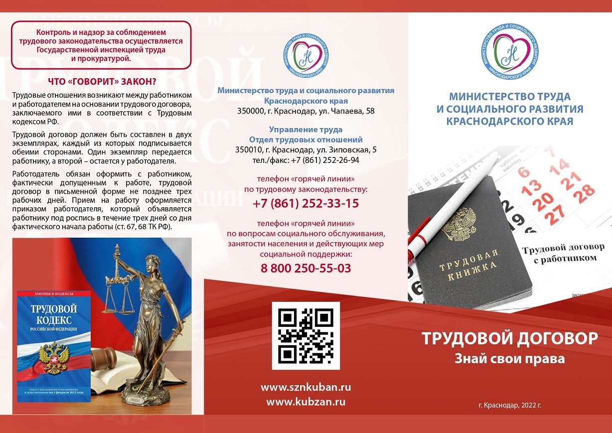 телефон "горячей линии" по трудовому законодательству: +7 (861) 252-33-15